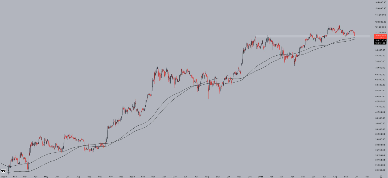 多頭則從技術面與宏觀面尋找支撐。交易員 Jesse 認為,BTC 當前正位於 10.4 萬~10.6 萬美元的日均線群附近,此區歷來是牛市中強支撐帶。