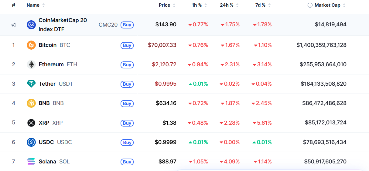 Solana 在 80 至 90 美元間窄幅波動,XRP 跌至至 1.38 美元。