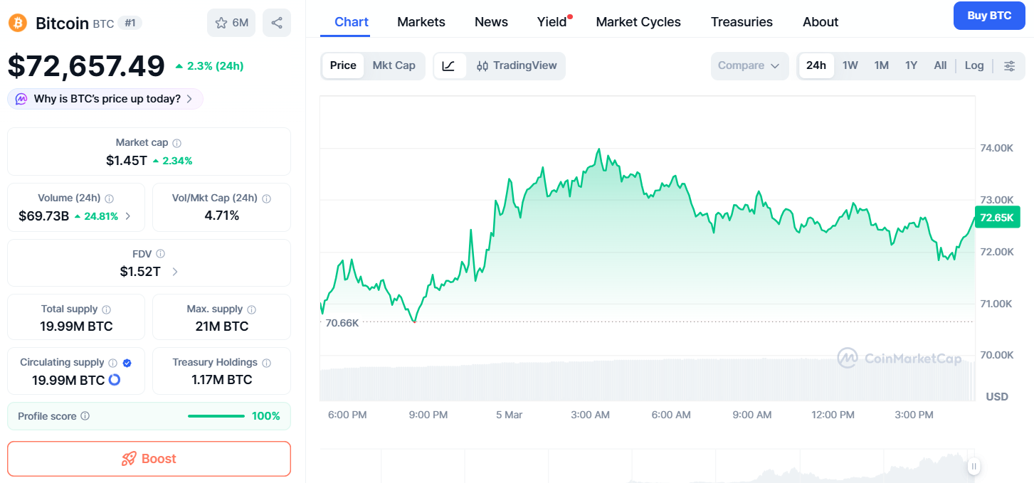 分析師指出,比特幣若能穩站 74,000 美元之上,短期可能挑戰新阻力區;若出現獲利了結壓力,價格恐再回測 72,000 美元附近支撐。