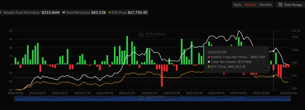 美國比特幣現貨ETF出現自2025年以來最長的一波連續流出潮。近五週的總淨流出金額接近38億美元,上週 alone 就有超過3億美元的資金撤離。