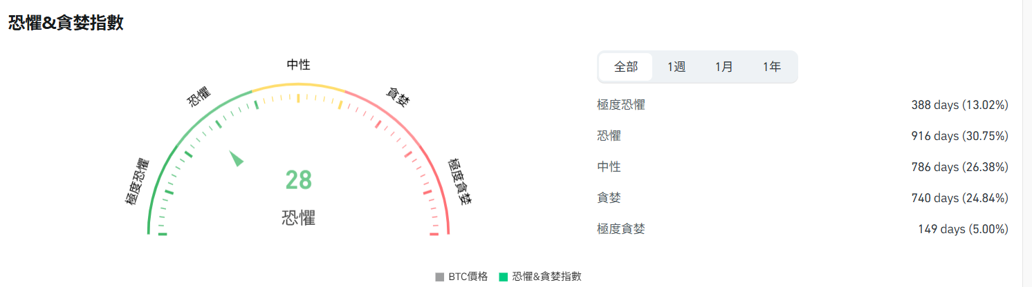 恐懼與貪婪指數最新報 28 (恐懼區間)。
