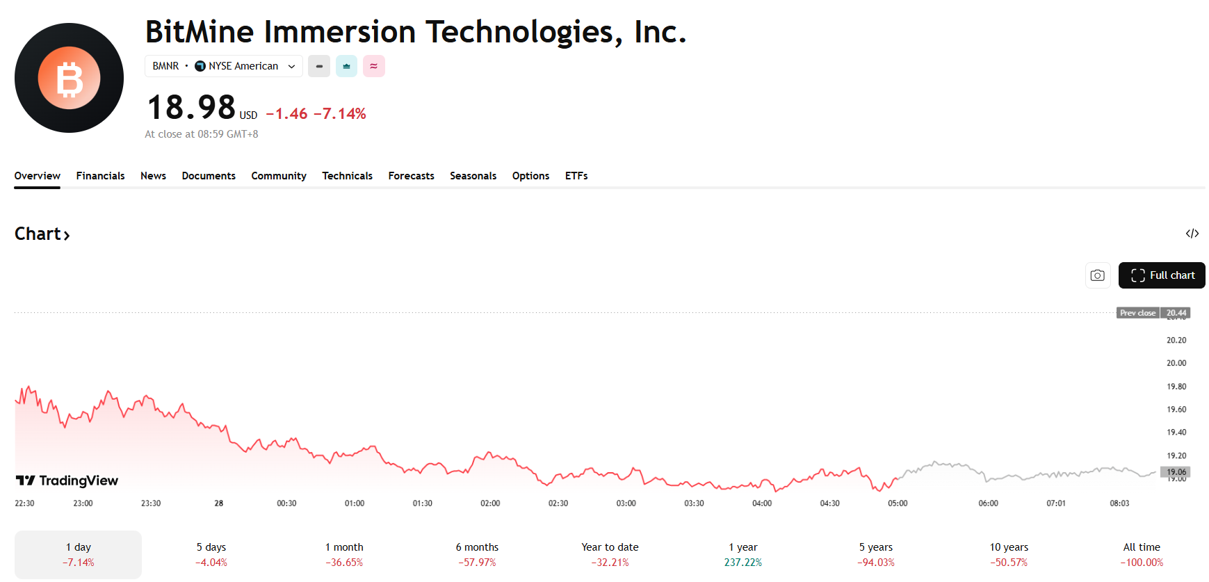 加密概念股普遍承壓,BitMine Immersion(BMNR)跌 7.05%、Circle(CRCL)跌 4.28%、MicroStrategy(MSTR)跌 2.95%、Coinbase(COIN)跌 2.88%。